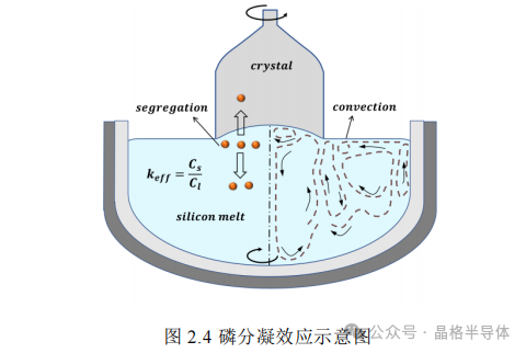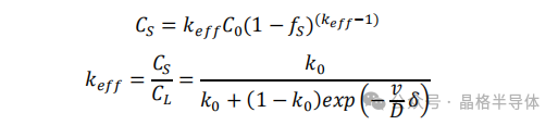 为了控制半导体的性质,我们需要人为的掺入微量的Ⅲ族(如镓)或Ⅴ族(如磷)元素杂质。Ⅲ族在硅中能接受电子而产生导电空穴并形成正电中心,称他们为受主杂质或 p 型杂质。Ⅴ族杂质在硅中电离时能释放电子而产生导电电子并形成负电中心,称他们为施主杂志或 n 型杂质。除了认为地掺入微量的元素外,在晶体生长过程中会不可避免地引入其他杂质元素,这些元素可能是原料不纯、坩埚高温分解的等带进一些杂质,这些杂质最后可能作为原子或离子的状态进入到晶体里。微量的杂质元素可以显著地改变晶体的性能。我们需要了解晶体生长过程中这些杂质在熔体中是如何分布的,以及影响晶体杂质分布的主要因素有哪些。了解杂质的分布规律,再利用这些规律改变生产条件来制备杂质均匀的单晶硅。硅熔体的杂质在结晶过程中由于分凝现象,杂质在单晶硅棒的生长过程中并不是均匀分布的,其浓度随着晶棒的空间位置而变化。在硅熔体中杂质的运输机制主要由浓度梯度引起的扩散运输,以及熔体的宏观对流引起的传输。磷杂质分凝示意图如图所示。直拉法生长系统的坩埚中通常存在自然对流和强迫对流,由于主加热器在坩埚的侧壁面处加热,硅熔体产生了径向温度梯度,由于热膨胀的关系引起熔体的密度差,自然对流的驱动力就是熔体的密度差异产生的浮力。为了维持熔体中的杂质均匀以及热场的稳定,通常晶体和坩埚都是以一定的转速旋转的,晶体和坩埚的旋转使得流体产生加速度,当熔体的惯性力克服了黏滞力的时候,熔体就产生强迫对流。晶体中的溶质浓度分布也与溶液的自然对流、溶液的强迫对流有关。扬州晶格半导体-提供超大尺寸柱状多晶硅、单晶硅材料,并可定制加工各类硅部件、硅锭、硅棒、硅环、硅管、硅靶材。17826693981单晶硅晶体生长过程是一个相对缓慢的过程,因此可以近似把晶体的生长过程当作是热力学平衡的过程,这时可以把溶液和固溶体共存的平衡条件应用在晶体生长的固液界面中。假设固液界面处晶体的溶质平衡浓度为𝐶𝑠0,则熔体中的溶质平衡浓度为𝐶𝐿0,就有𝑘0 = 𝐶𝑠0/𝐶𝐿0。对于晶体生长的固液界面处𝑘0 = 𝐶𝑠0/𝐶𝐿0总是成立的。溶质的分凝系数可以小于 1 或者大于1,比如磷杂质的分凝系数是 0.35,氧的分凝系数为1.27,当𝑘0<1 时,在固液界面处单位体积熔体结晶时,溶质分凝到晶体的溶质要比留在熔体中的多,随着晶体的生长,熔体中的溶质浓度𝐶𝐿0 越来越高,因为𝑘0是不变的,随着晶体的生长晶体中的溶质浓度𝐶𝑠0会越来越高,所以𝑘0<1的溶质在晶棒中是呈头低尾高的趋势,磷杂质在晶体中就是呈现头低尾高的趋势。同理𝑘0> 1时,溶质分凝到晶体的溶质要比留在熔体中的少,随着晶体的生长,熔体中的浓度越来越低导致晶体的浓度也越来越低,所以溶质在单晶棒中头高尾低。杂质在晶体中的分布是由它们在结晶过程期间在硅熔体中的运输来决定的。单纯的热力学平衡过程不足以解释溶质的分布,我们还需对晶体生长的物理模型进行定义。在晶体的实际生长过程中,晶体的生长并不是无限缓慢的,而是以一定的速率进行的,此时溶质在熔体中会发生扩散效应。晶体在重力场中生长,总是伴随着自然对流,为了加速热量与溶质的传输,进行人为的搅拌,熔体中自然对流与强迫对流同时存在,因此除了扩散效应,还需要考虑对流对溶质分凝的影响。晶体生长期间的熔体流动确保了从熔体到固-液界面的质量传输,因此它限定了分凝到晶体中的杂质的量。这些机制导致沿着晶体高度的非均匀杂质浓度。在封闭系统的情况下,其中不发生固态的掺杂剂蒸发或扩散,并且存在足够的熔体混合以确保熔体中均匀的杂质分布,杂质分布由 Gulliver-Scheil 方程决定:其中𝐶𝑆是单晶硅中的杂质浓度,𝐶0是凝固开始之前熔体中的初始杂质浓度,𝑓𝑆是凝固材料的分数,𝑘𝑒𝑓𝑓是有效分凝系数,其被定义为晶体𝐶𝑆和熔体𝐶𝐿中的杂质浓度的比。𝑘𝑒𝑓𝑓取决于平衡偏析系数𝑘0(磷的平衡偏析系数为 0.35)、杂质在熔体中的扩散系数𝐷、晶体生长速率𝜐和固液界面处的边界层厚度𝛿。