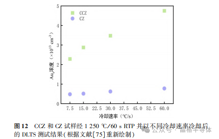 碳是直拉单晶硅中非有意引入的杂质,与有意引入硅中的氮相似,居于替代位的碳(Cs)原子同样能与硅中的其他杂质和点缺陷产生相互作用。 当 Cs 俘获自间隙硅原子后,Cs 进入间隙位形成可快速迁移的间隙碳原子(Ci ),并可与 O 结合形成 Ci-O 中心。 这些 Ci-O 中心在后续退火中会继续俘获 O,形成更为复杂的碳相关复合体并成为氧沉淀的异质形核中心。由于 Ci 对 O 的俘获作用,在含碳的掺氮直拉单晶硅中氮氧浅热施主的形成会受到影响,但其影响规律和机制仍有待深入研究。 周军委研究了高浓度碳杂质对掺氮直拉硅片的氮-氧复合体浅热施主(N-O STDs)、氧沉淀和氧热施主形成的影响,结果表明:- 在650 ℃ 热处理条件下,当碳浓度较低时(3. 4×10^16cm^-3),N-O STDs 的形成几乎不受影响。 当碳浓度较高时(5. 1×10^16cm^-3),N-O STDs 的形成则受到显著的抑制。