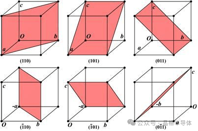 (100) 晶向:对应立方体的棱边方向,原子排列成正方形网格。 (110) 晶向:对应立方体面对角线方向,原子排列呈矩形。 (111) 晶向:对应立方体体对角线方向,原子排列为正三角形密堆积。
