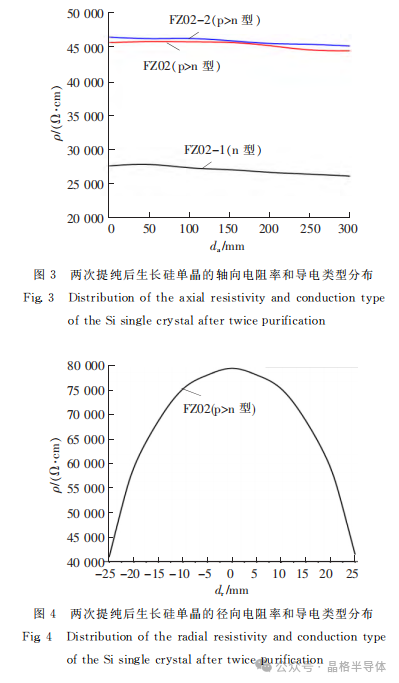 采用 CFG4/1400P 型区熔炉对基磷 5.1×10⁻¹¹ at.%、基硼 7×10⁻¹² at.% 的多晶硅进行处理: