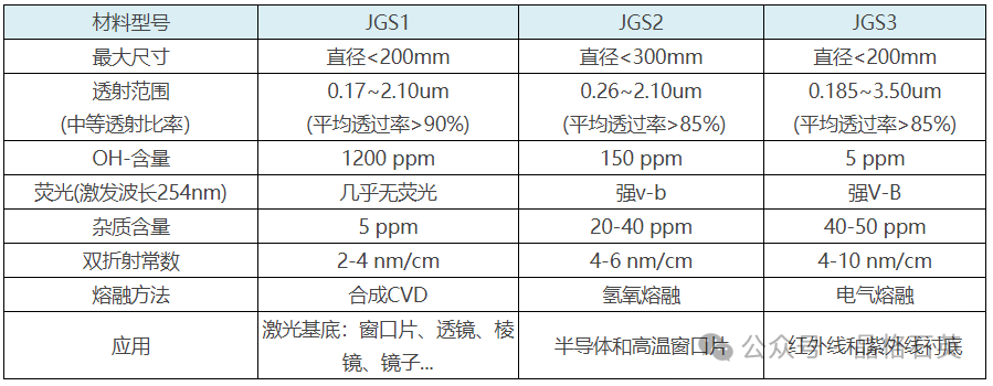 石英JGS1/JGS2/JGS3以及进口材料有什么差别
