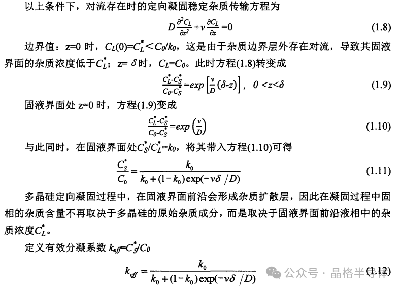 在实际凝固过程中,液相完全混合和只有扩散的情况都是极少遇到的,通常定向凝固都是从底部向顶部凝固,是在重力场中进行的,在硅熔体中存在自然对流。即液相中既有杂质的扩散也有对流搅拌。