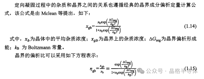 多晶硅定向凝固过程也是多个晶核生长长大的过程,多晶硅晶体是由许多晶向不同尺寸不一的晶粒组成的,在晶粒的相交处,硅原子有规则、周期性的重复排列被打断形成了大量的晶界,含有大量的悬挂键。杂质、空位、点缺陷等在晶界和相界上的偏析是晶体材料中的一种普遍现象。不同晶核之间的位相关系不受约束,由此形成的晶界不存在取向关系,完全是随机的,因此多晶核形成的晶界多为大角度晶界。在不同晶粒生长过程中,结晶界面前沿排出的溶质在液相富集程度不断增加,最后区域凝固时在相邻晶粒相遇时达到最大值,最终在晶界处结晶析出。因此多晶核定向生长形成的晶界上成分偏析将更加严重。